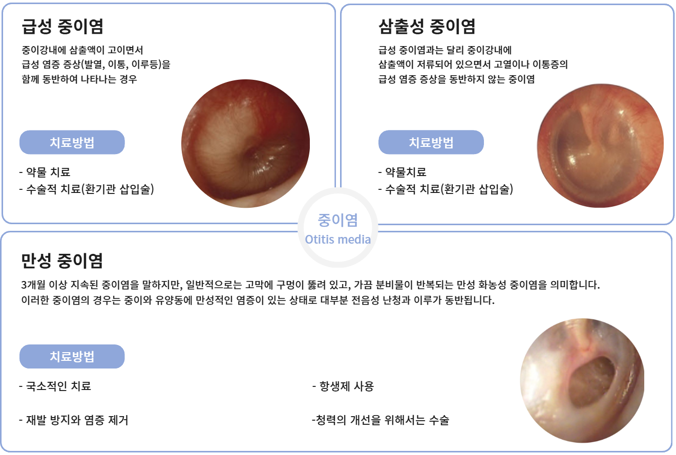 일재발 방지와 염증 제거, 청력의 개선을 위해서는 수술이 필요합니다.